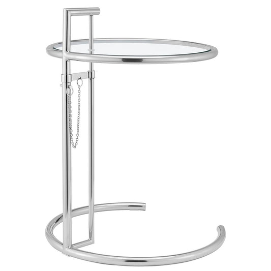 Eileen Gray Side Table Round Glass Lift Coffee Table Inspired Replica: Inspired by Eileen Gray's iconic design, this side table replica features a sleek chrome base and adjustable glass top. This replica stays true to the original design while offering a more affordable alternative for budget-conscious buyers.