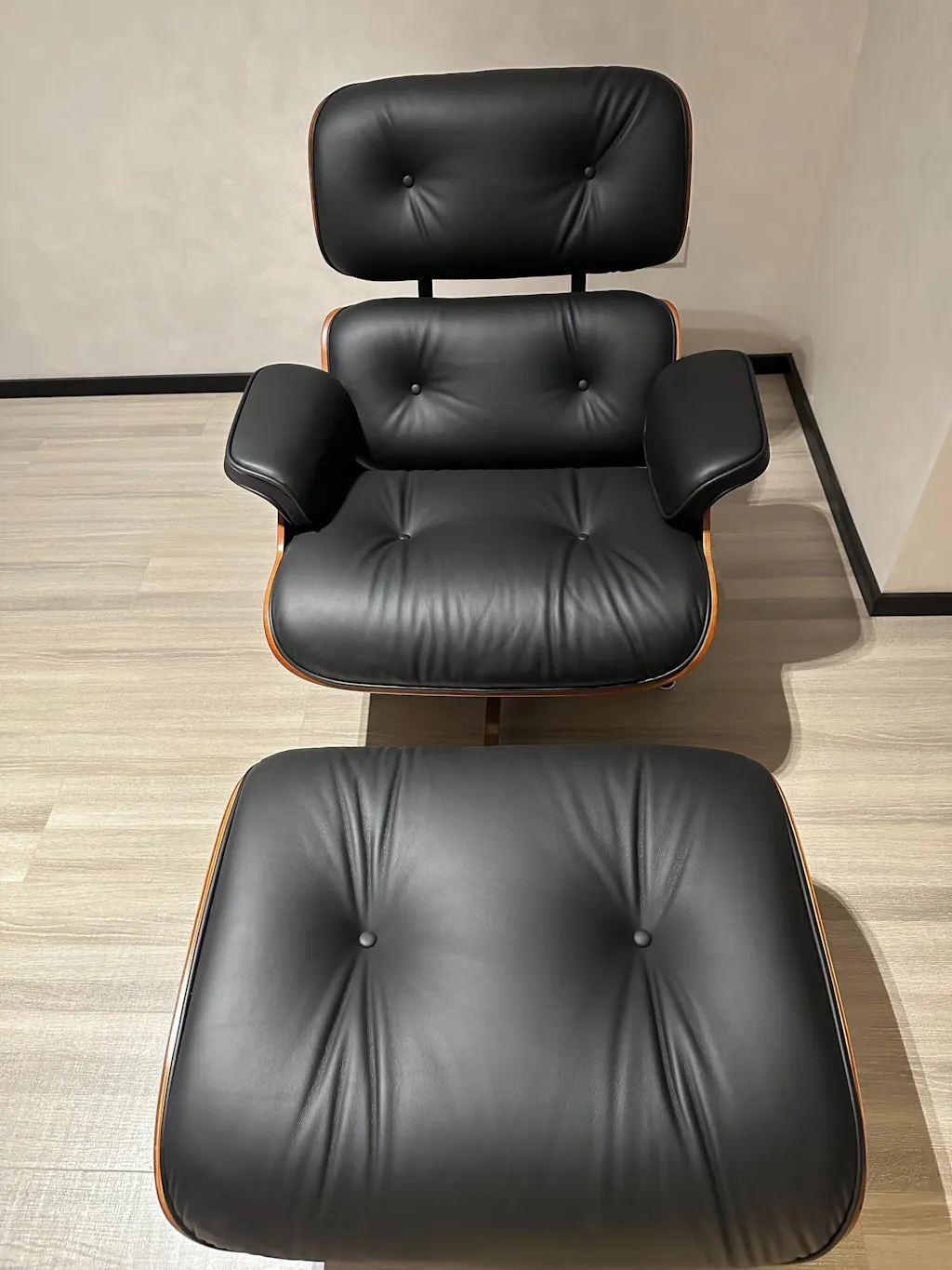 Réplica de sillón y otomana Eames en cuero italiano negro
