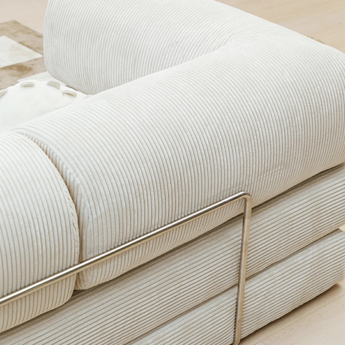 Le canapé est doté d'une éponge haute densité et d'un tissu en velours, garantissant durabilité et confort aux utilisateurs, tout en offrant une esthétique élégante et moderne.
